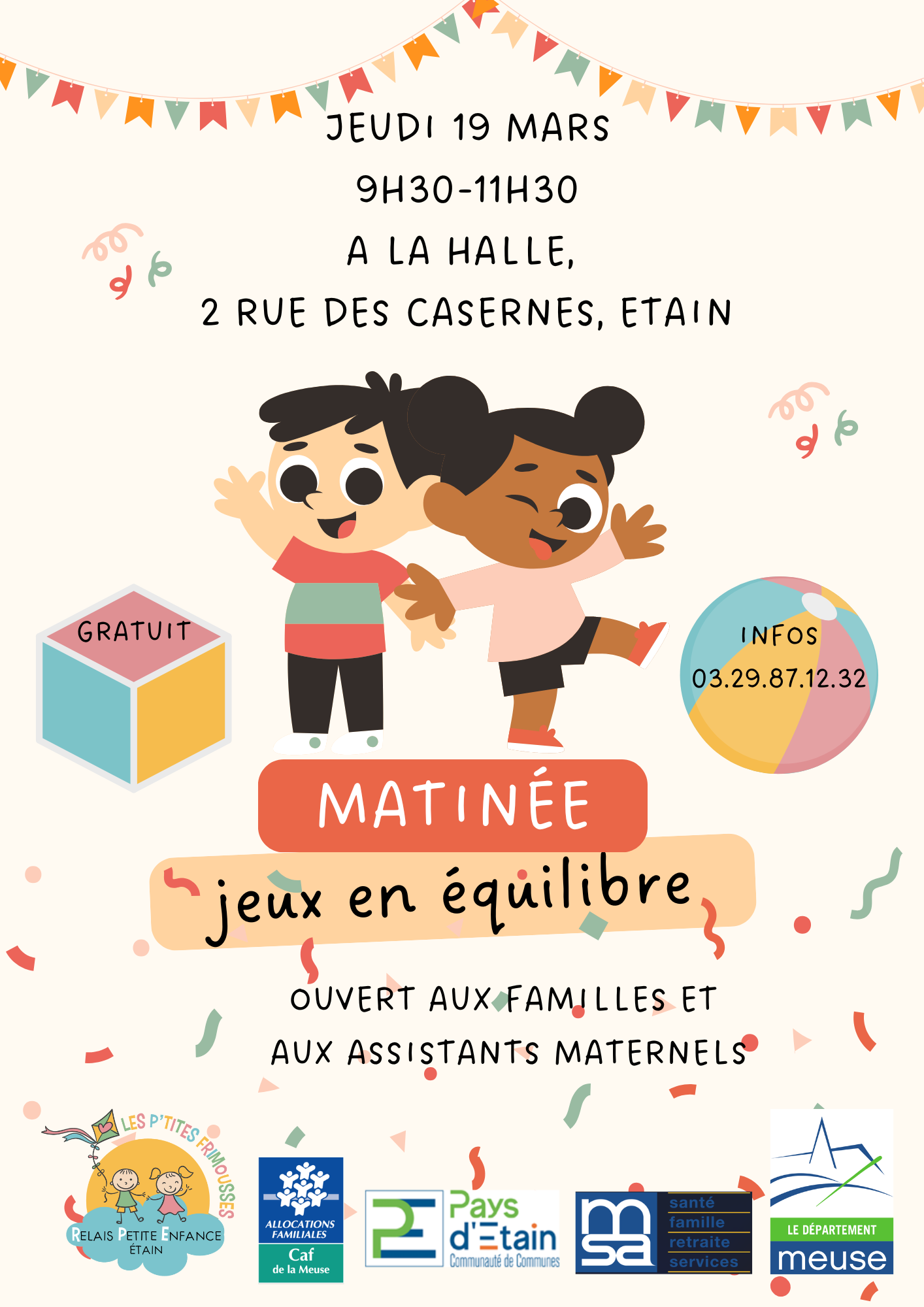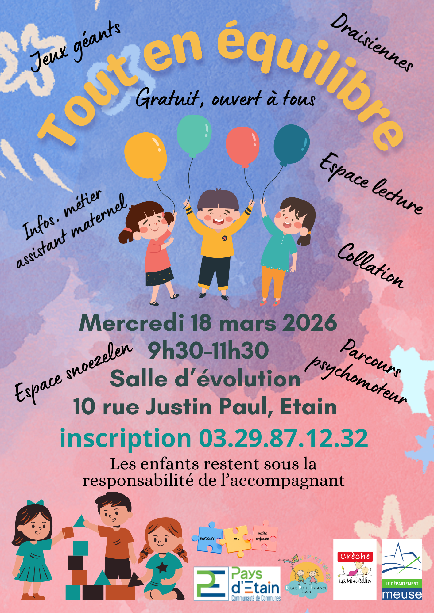 La Communauté de Communes du Pays d’Étain et ses partenaires proposent une semaine d’animations gratuites à destination des jeunes enfants (0-6 ans), des parents et des assistants maternels.